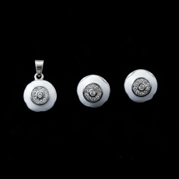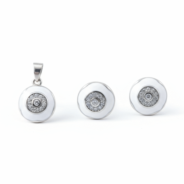 925 White Enamel & Pave Halo Sterling Silver Jewelry Set
