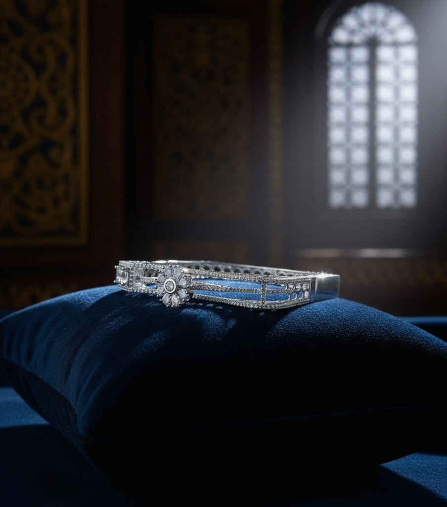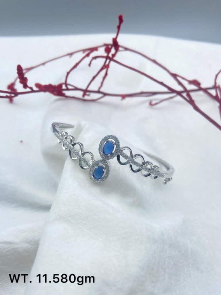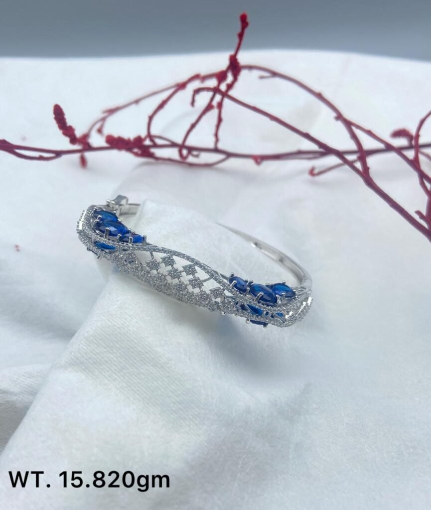 925 Silver Designer Bangle with Blue Sapphire and Zircon – 15.82gm