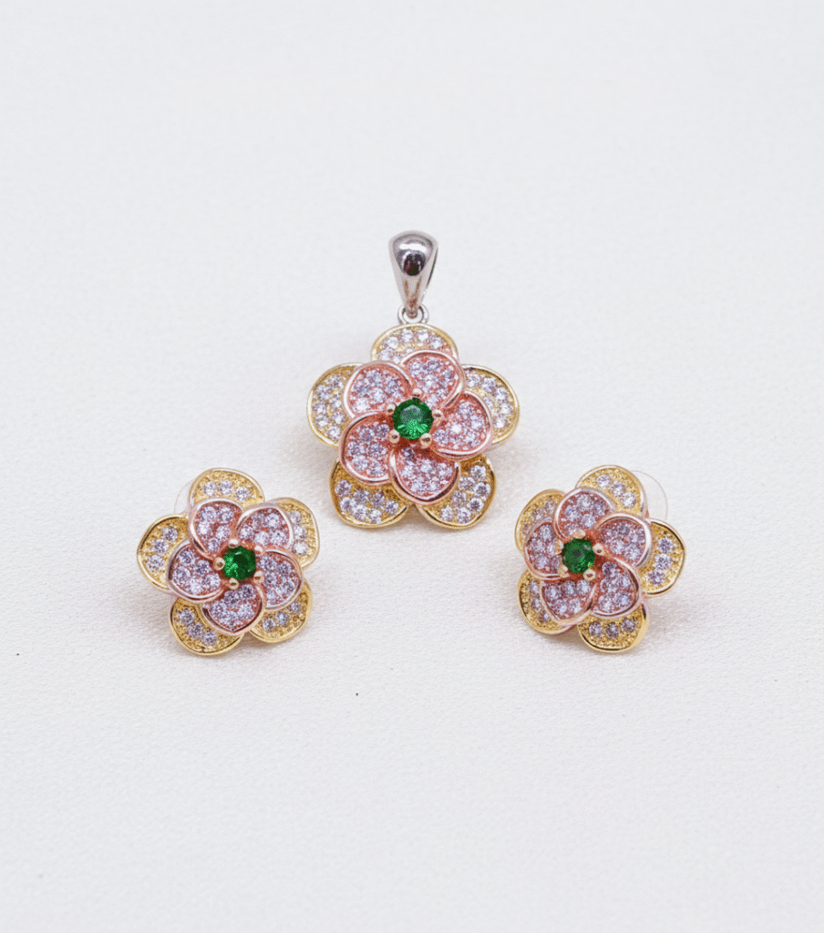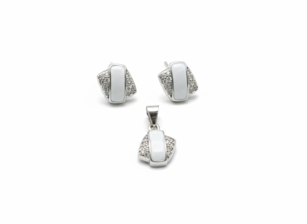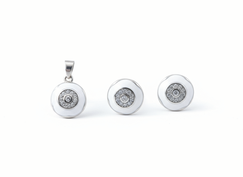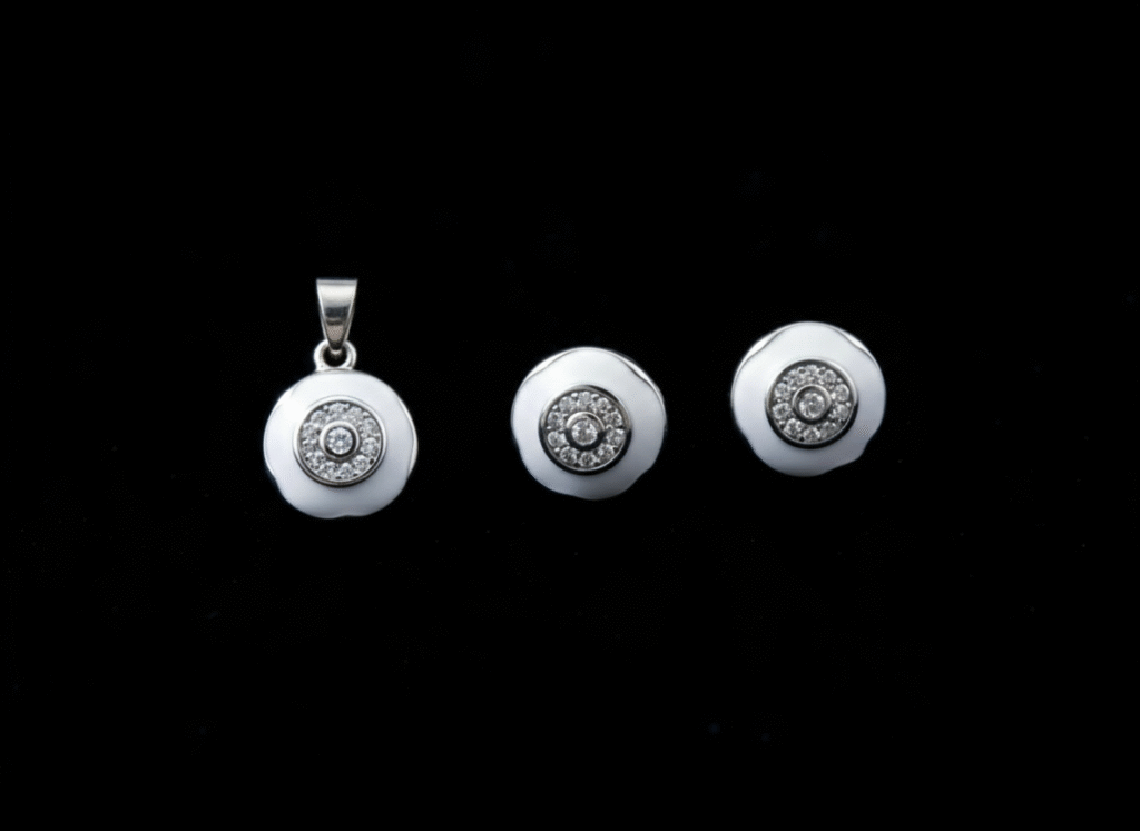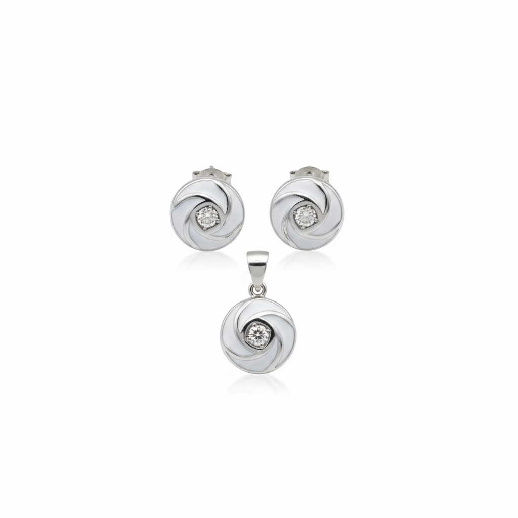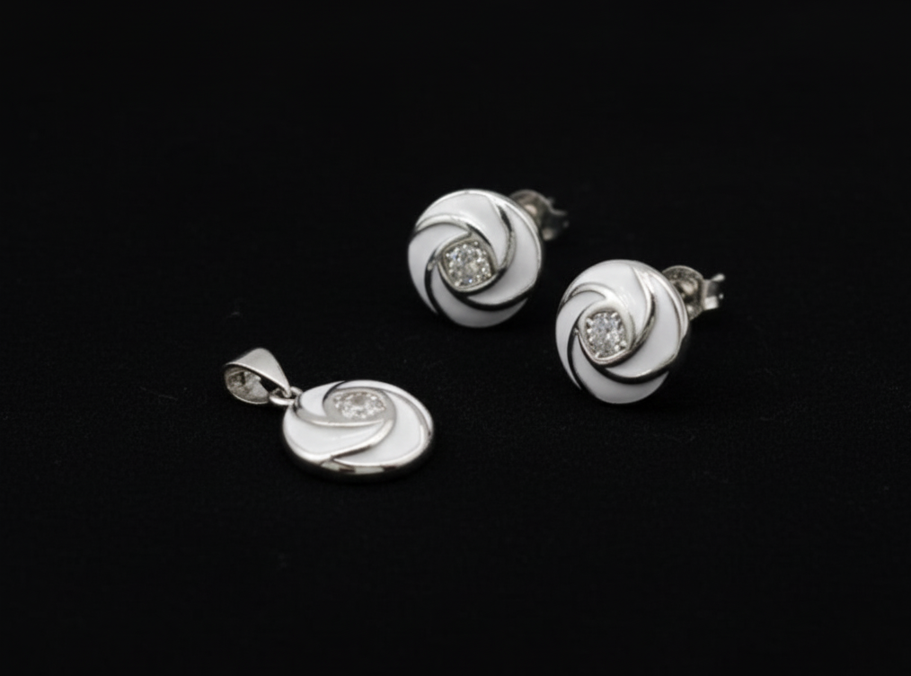925 silver Porcelain Rose” White Enamel & Diamond Simulant Jewelry Set